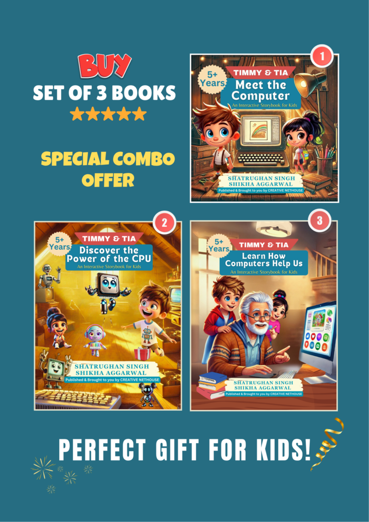 Looking for a fun and meaningful way to introduce your child to the world of computers? This special 3-book combo from the Timmy & Tia series is the perfect blend of entertainment and early tech learning, thoughtfully designed for kids aged 5 to 8 years.